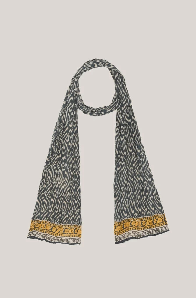 The Maison Hotel Rosie Scarf in Blue Shibori is an effortless study in print and movement.