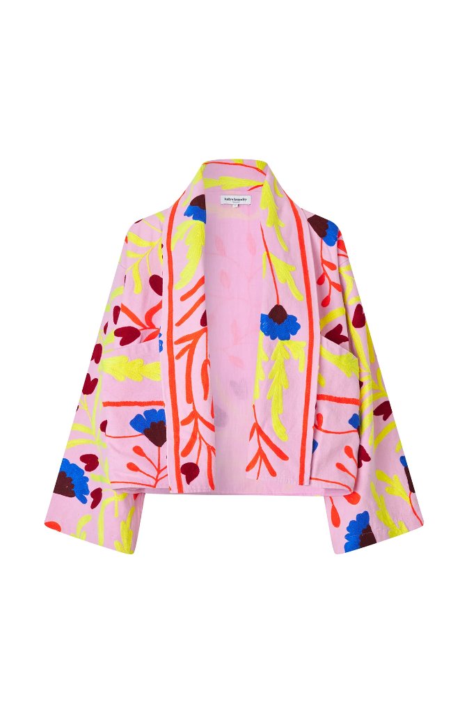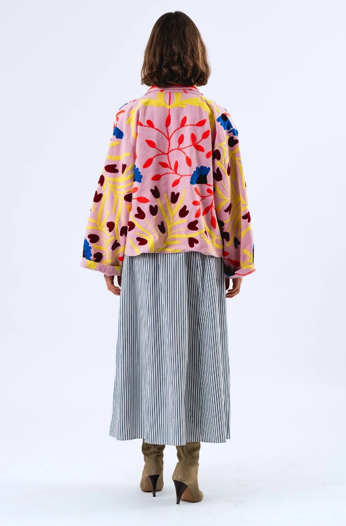 Add a flamboyant edge to your wardrobe with the RumiLL Jacket by Lollys Laundry. Crafted from cotton canvas, this colourful style features vibrant floral embroidery in yellow, blue, orange and burgundy. Its shape is wide and loose accentuated by deep pockets and wide lapels. Designed for layering, it pairs effortlessly with jeans or dresses for a relaxed or bohemian look. Stylish, easy to wear, and full of personality, the RumiLL is more than a jacket—it’s wearable art.