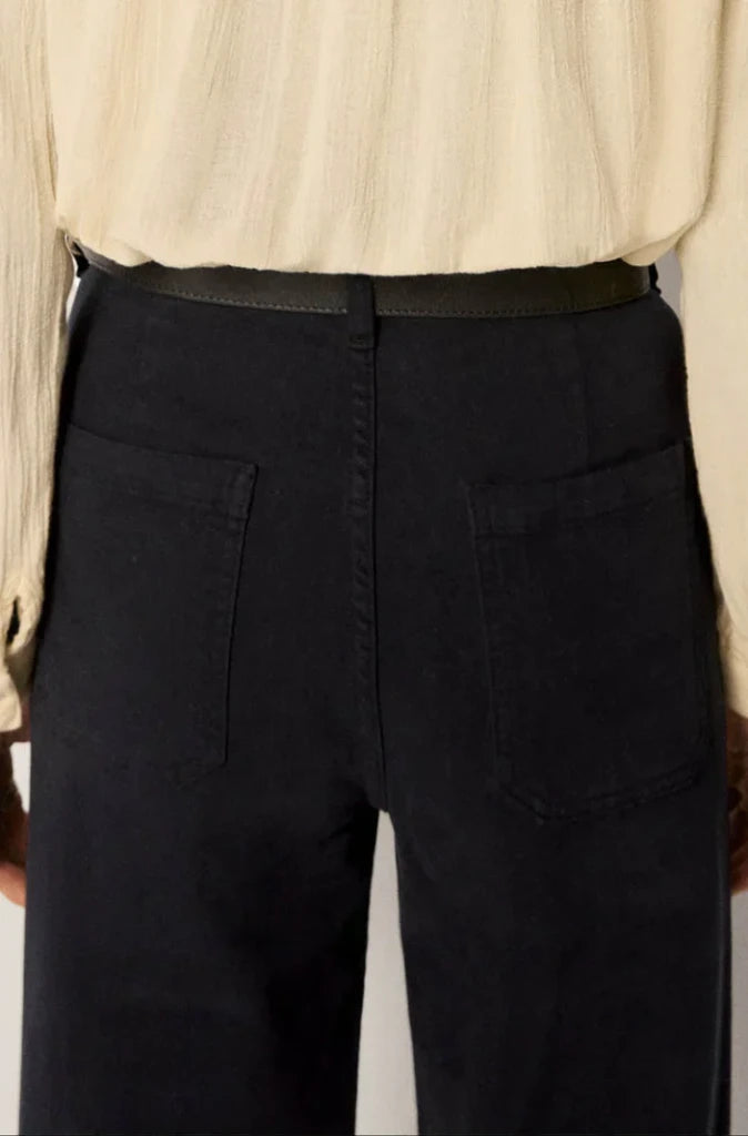 Soft cotton brings comfort to the Clyde Pant in Navy by Maison Hotel, while its clean high-rise fit maintains a sharp, tailored edge.