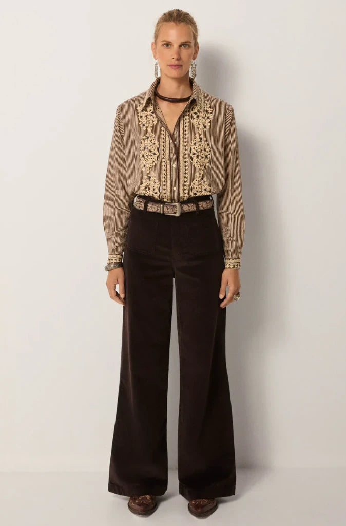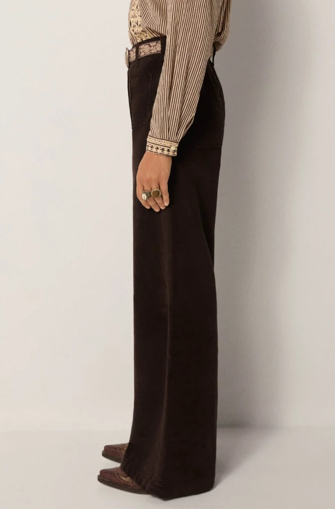 Embrace cooler days with the Romeo Pant in Montesco Mud by Maison Hotel, a corduroy essential with depth and character. The rich, earthy tone evokes warmth and understated edge, perfect for winter dressing.