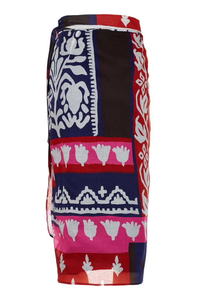 An eyecatching wrap cotton skirt in vibrant colours. Made from super soft cotton voile and fully lined also in cotton voile.