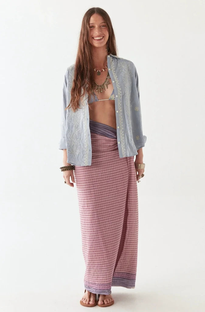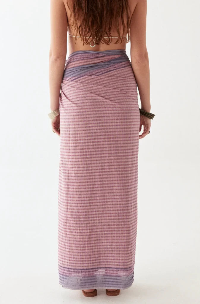 Its airy weave and graceful drape make it endlessly versatile—tie it at the waist, drape over shoulders, or layer as a beach cover-up. Subtle edges in deeper hues add quiet sophistication to its natural texture.