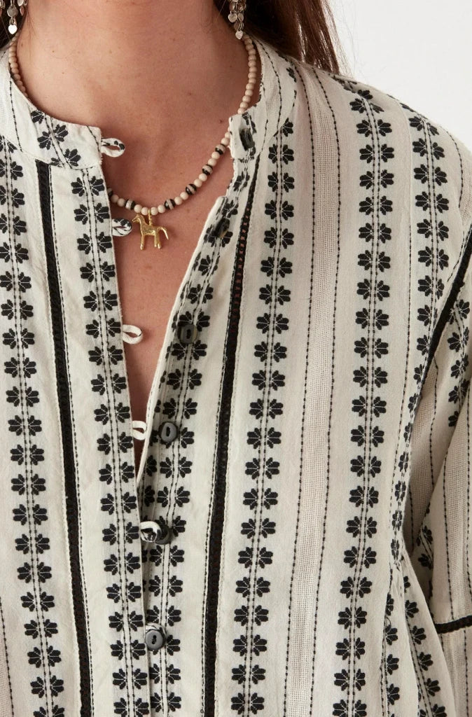 The Maison Hotel Consuelito Blouse captures effortless bohemian style with vintage-inspired detail. Crafted from pure, breathable cotton, the fabric is soft yet structured, designed to move beautifully with you.