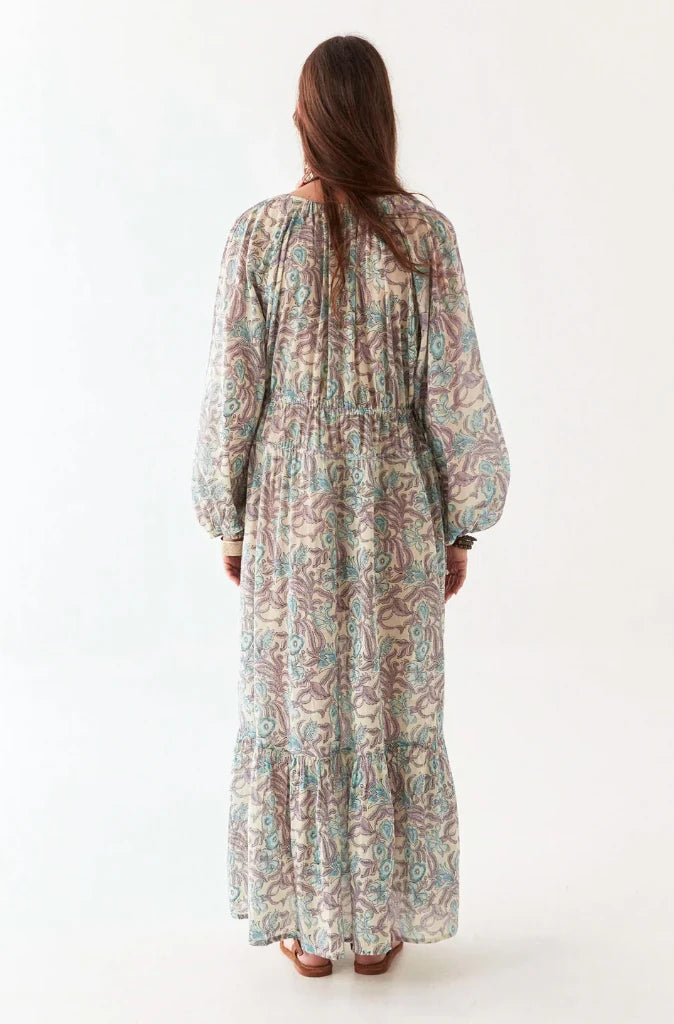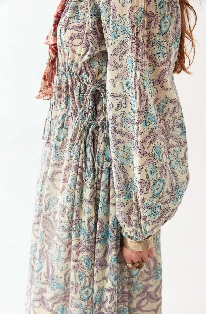 The included separate cotton lining and the adjustable drawstrings at the waist and under bust allow this to be dressed-up or dressed-down in multiple ways. In warm summer evenings we prefer it without lining and paired with vintage leather sandals.