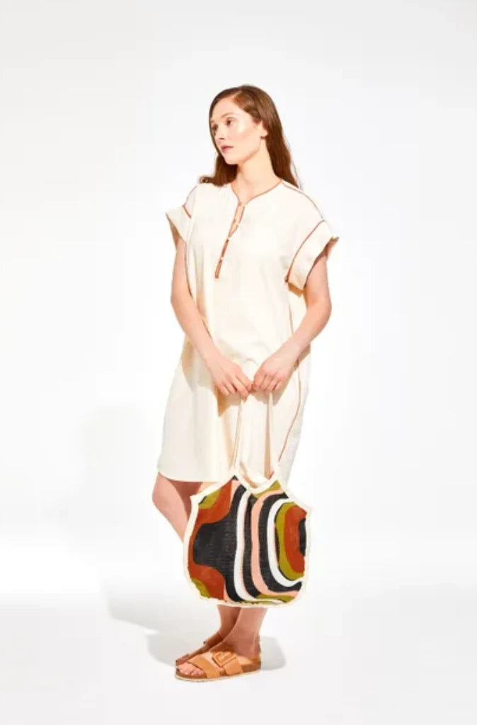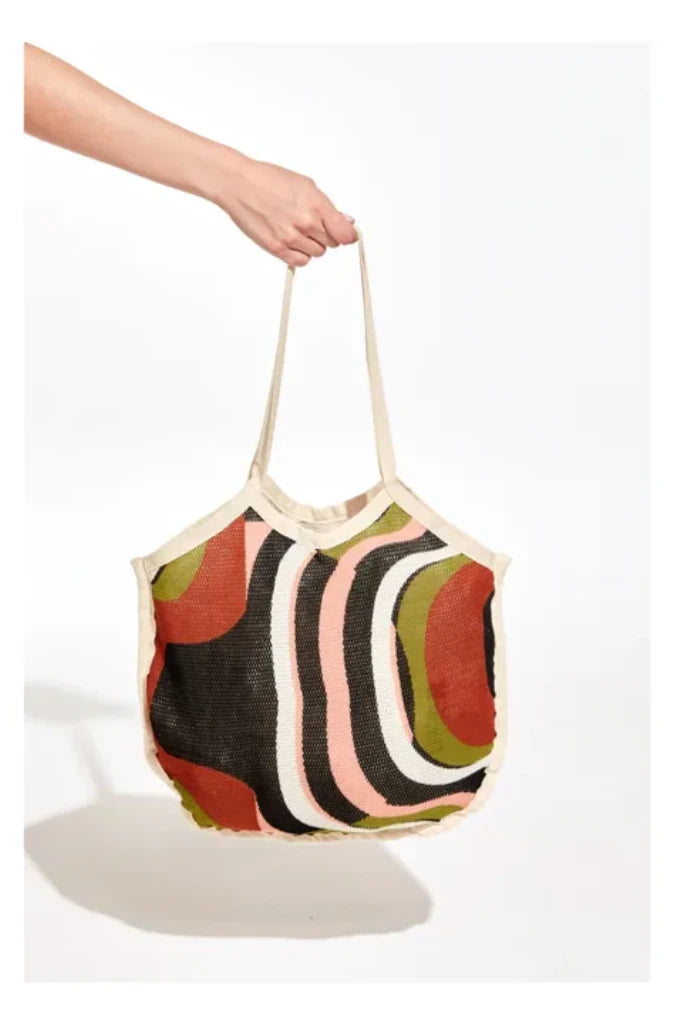 Cotton fishnet bag printed with Songe motif Print on frame Reinforced by fishnet lining and cotton bias binding