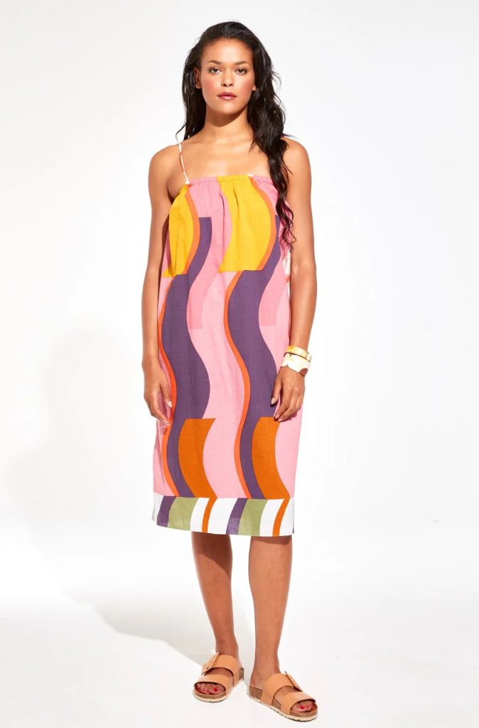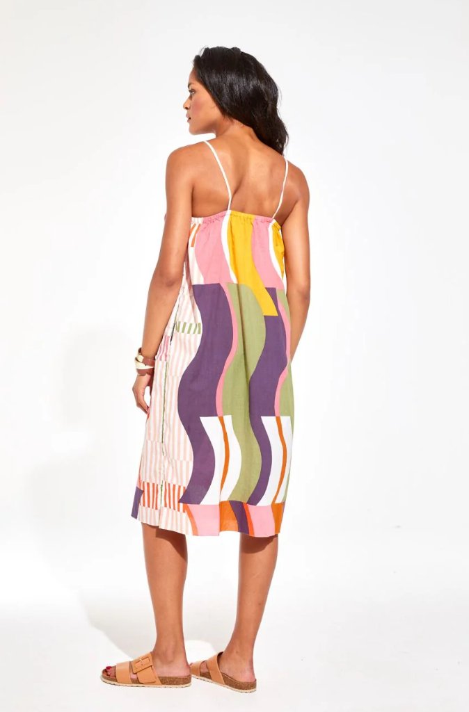 The Joy Dress is perfect for high summer. This one is in the Nazare print on a fine soft cotton. The joy has a straight cut with fixed straps. Side slits and side pockets complete this beautiful dress.