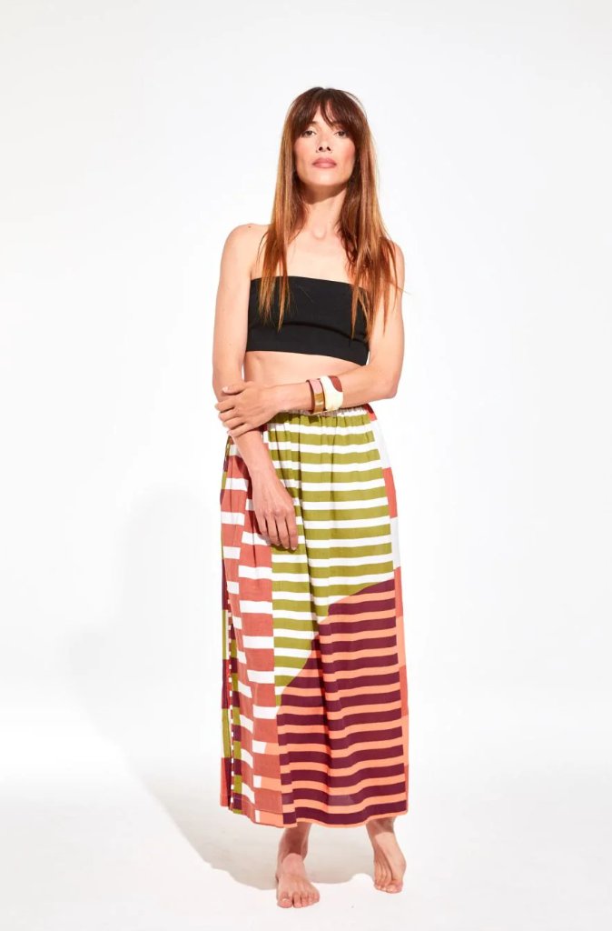 The Juliette skirt is a favourite from MaPoesie. Made from a light, airy printed cotton voile, the skirt has a loose fit with an elasticated waistband. Side pockets and side splits make this a great choice for summer.
