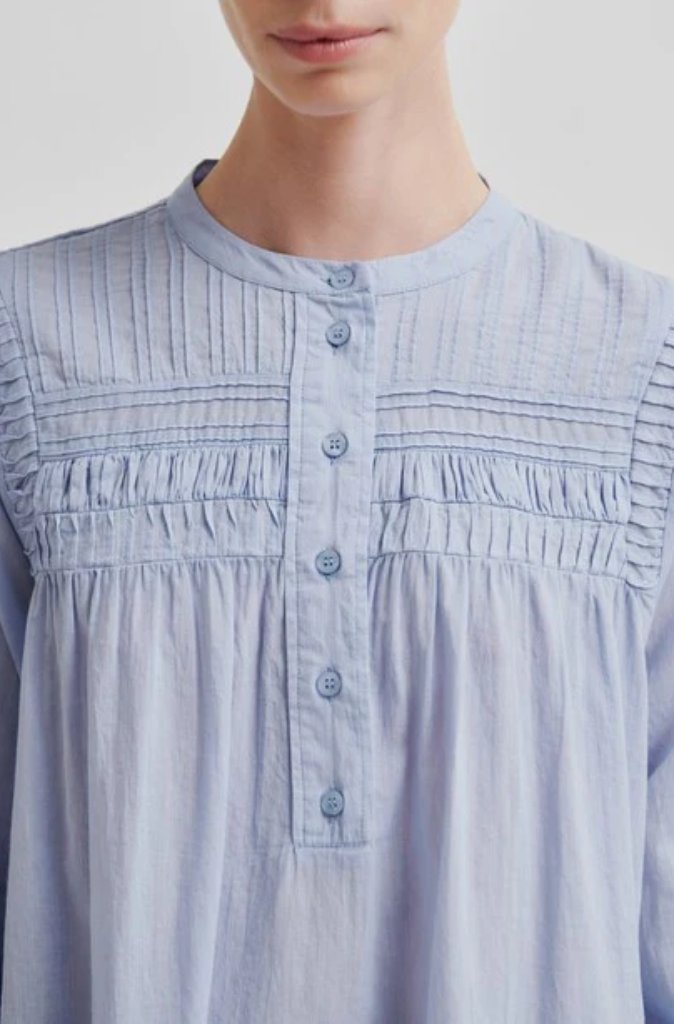 This stunner from Second Female has a relaxed, straight cut with button fastening, a round neckline and wonderful stitching details at top and shoulders that create structure. Long sleeves with elasticated cuffs.