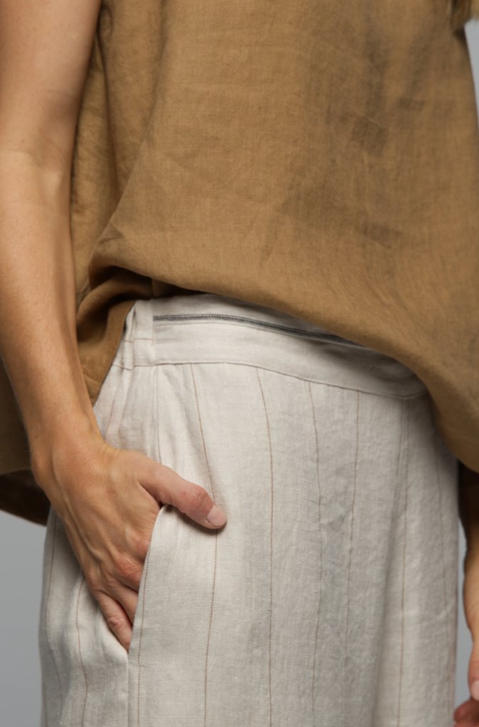 The Armani pants have a great, wide leg style and are super comfortable as well. These pants have a beautiful drape that elevate them to more than just a pair of linen pants! A flat front and an elasticised back waistband provides comfort and an easy, pull on style.