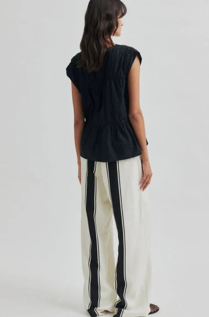 The Second Female Felixa Top blends soft structure with feminine ease. Crafted from smooth, lightweight cotton, it features elasticated shoulder seams, a delicate tie neckline, and an adjustable drawstring waist for a flattering silhouette. The relaxed fit and refined detailing make it a versatile piece that moves effortlessly from day to evening — perfect with denim, tailoring, or flowing skirts for a polished, modern look.